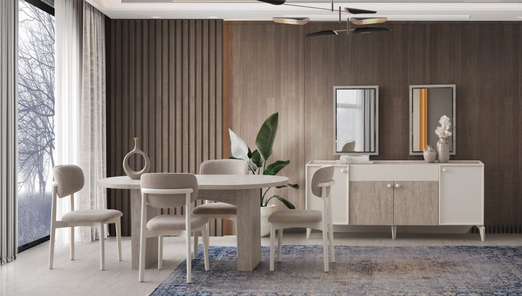 Evart Mobilya'nın yemek odası takımları, sofistike tasarımı ve dayanıklı yapısıyla yaşam alanlarınıza değer katıyor. Şıklığı ve kullanışlılığı bir araya getiren bu özel koleksiyon, keyifli yemek deneyimlerine eşlik ediyor.