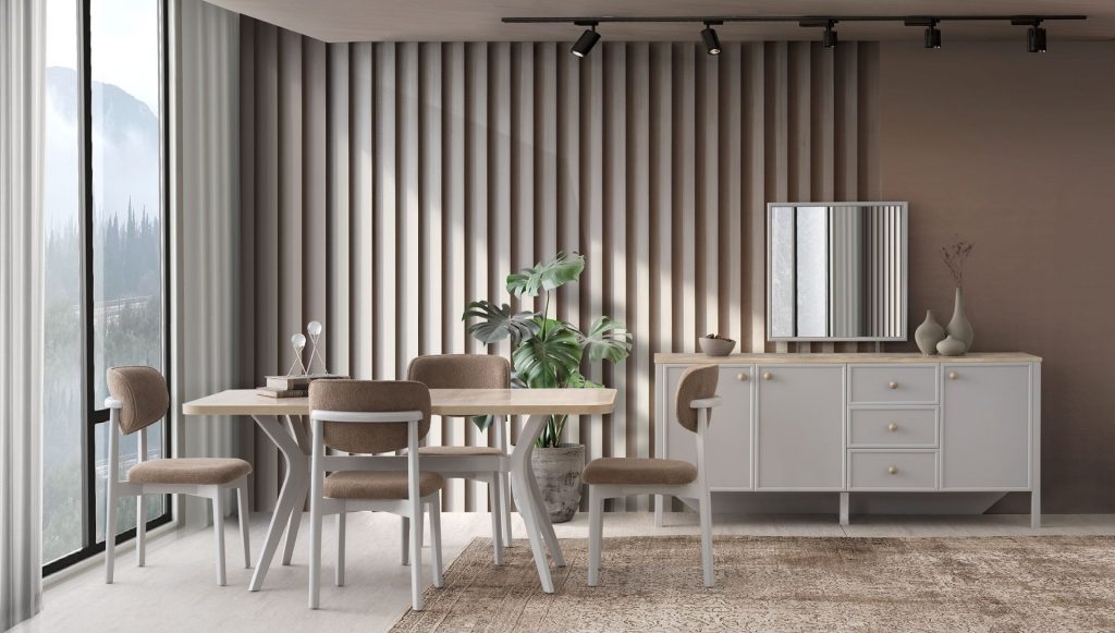 Evart Mobilya'nın yemek odası takımları, sofistike tasarımı ve dayanıklı yapısıyla yaşam alanlarınıza değer katıyor. Şıklığı ve kullanışlılığı bir araya getiren bu özel koleksiyon, keyifli yemek deneyimlerine eşlik ediyor.